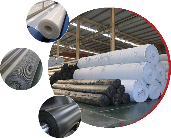 軟式透水管、盲溝、橡膠支座、止水帶、止水條、PE/PVC管材等土工合成材料;